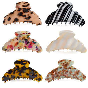 Женские заколки-клешни с принтом, с принтом леопарда, большие ацетатные Элегантные Заколки для волос, конский хвост, Цветочная полоса, ацетатные заколки для волос
